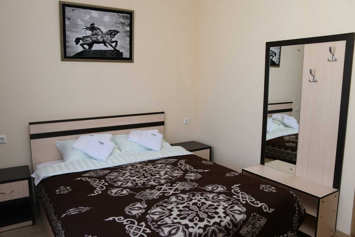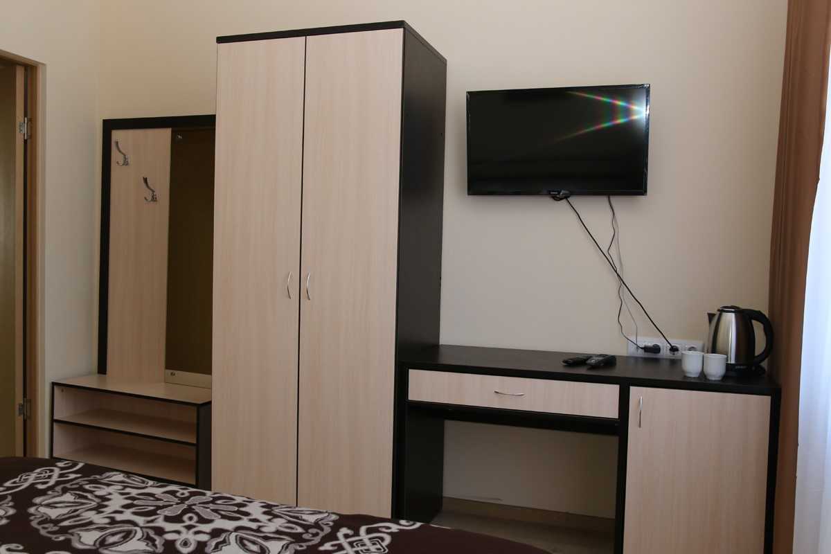 4 осн. места. Мебель: вешалка, зеркало, кровати односпальные, прикроватные тумбочки, стол, стулья, шкаф. Оборудование. Санузел: с душем, туалетные принадлежности. Сервис: смена полотенец, смена постельного белья, уборка номера.